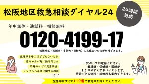 松阪市・多気町・明和町にお住まいの方なら、救急車を呼ぶほどでもない時や、対応に困ったときに活用していただける、救急相談ダイヤル24がご利用いただけます。