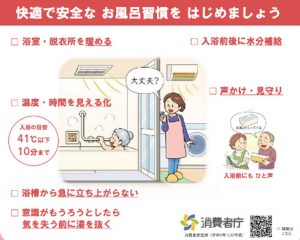 これから本格的な冬を迎えますので、日頃からお風呂場での事故防止について家族全体で意識を持ち、寒い冬を安全に乗り切りましょう。