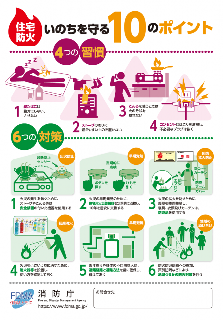 日頃から「住宅防火いのちを守る10のポイント」をご確認いただき、4つの習慣、6つの対策を守り行動しましょう。