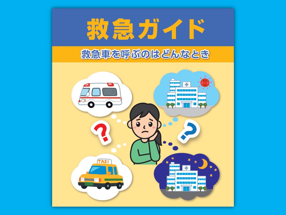 〇ためらわず救急車を呼んでほしい症状や、救急車を呼ぶときに知っておいてもらいたいことをまとめたリーフレット「救急ガイド」も掲載しています。☟